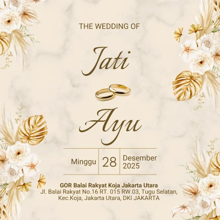 Our Wedding Invitation Jati & Ayu Kepada Yth. Bapak / Ibu /Saudara/i Our Wedding Invitation J A Minggu, 28 Desember 2025 The Wedding of Jati & Ayu Simpan di Kalender J A Count The Date Days Hours Minutes Seconds Assalamu’alaikum Warahmatullahi Wabarakatuh Tanpa mengurangi rasa hormat, kami bermaksud mengundang Bapak/Ibu/Saudara/I untuk menghadiri acara pernikahan kami […]
